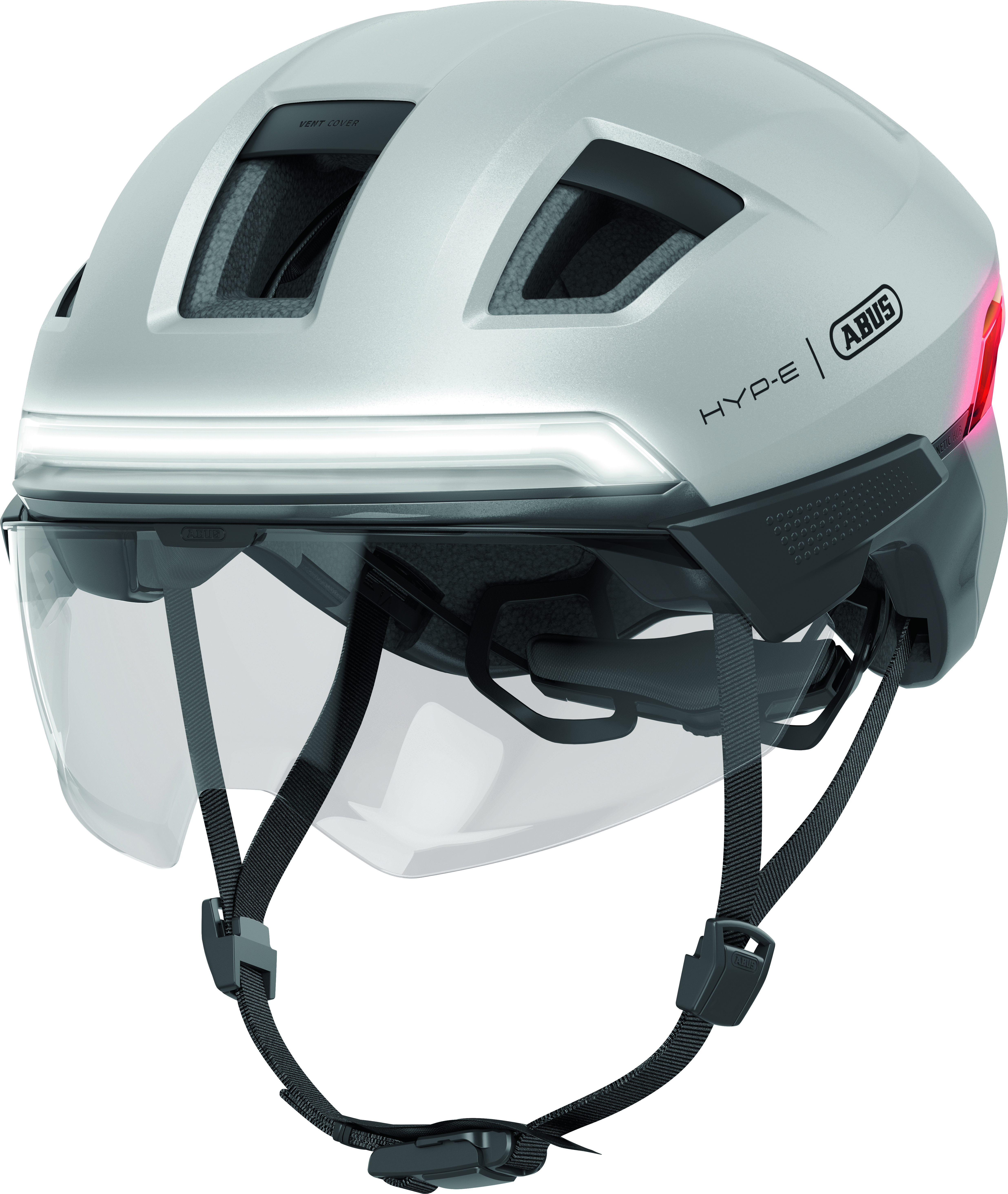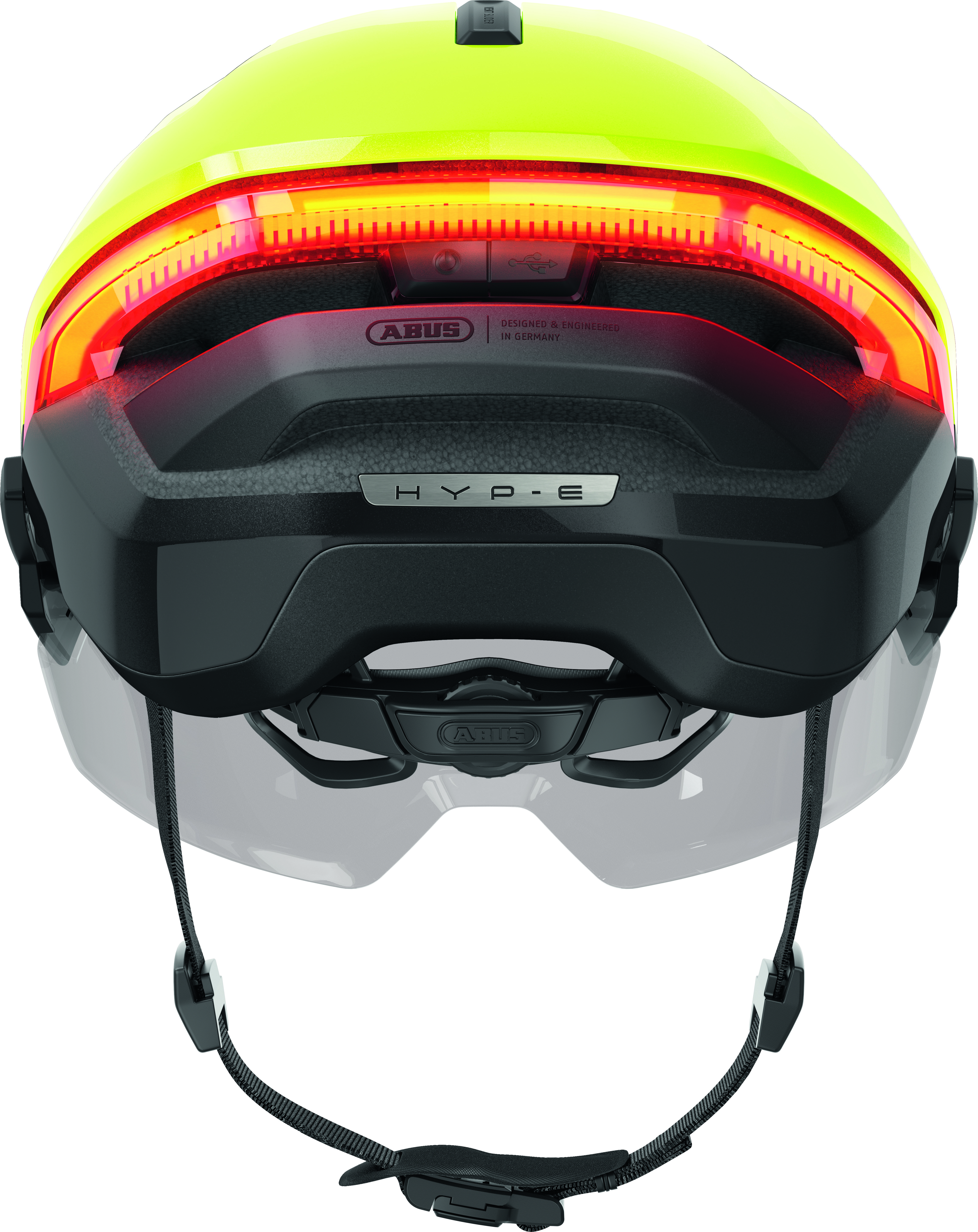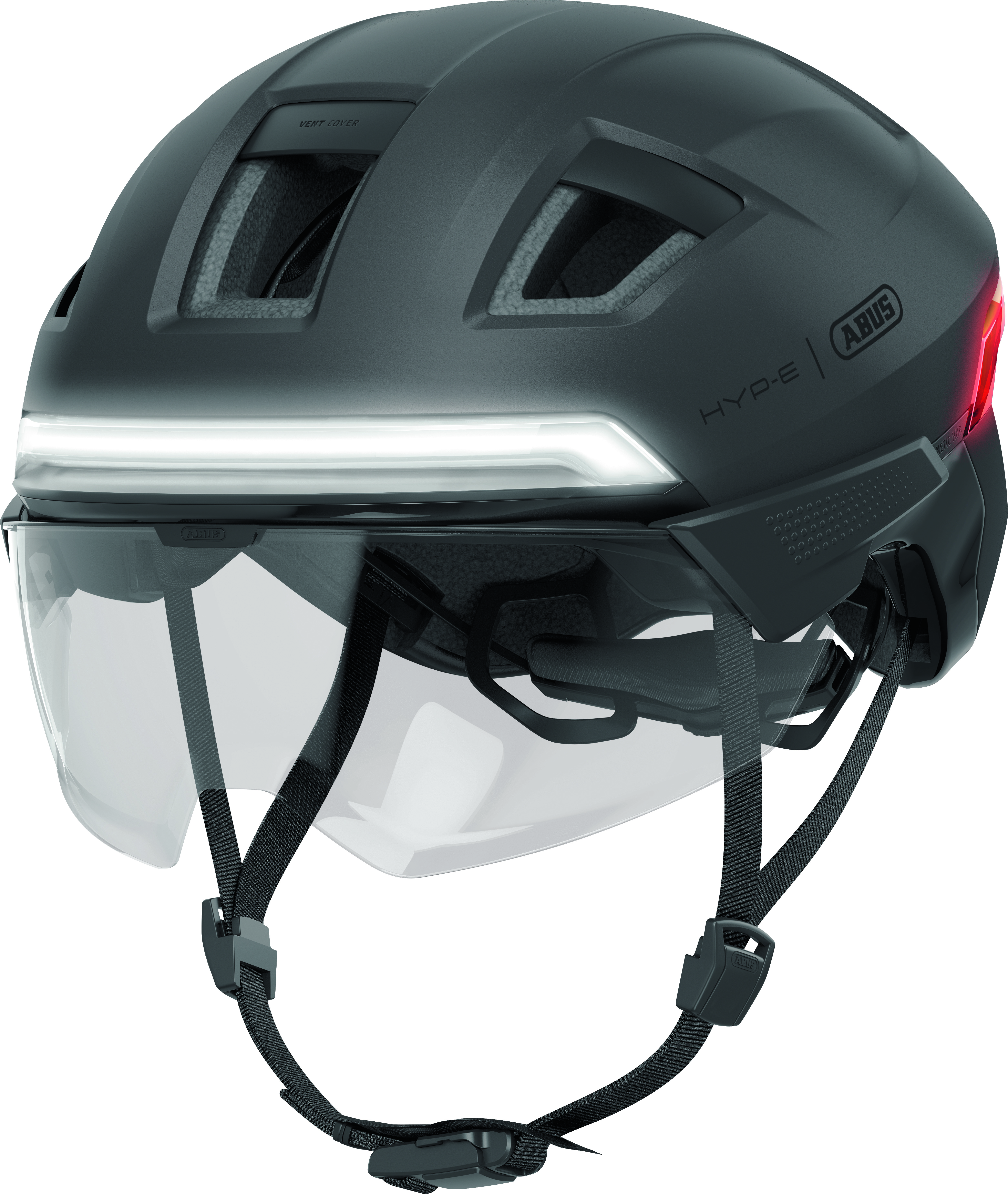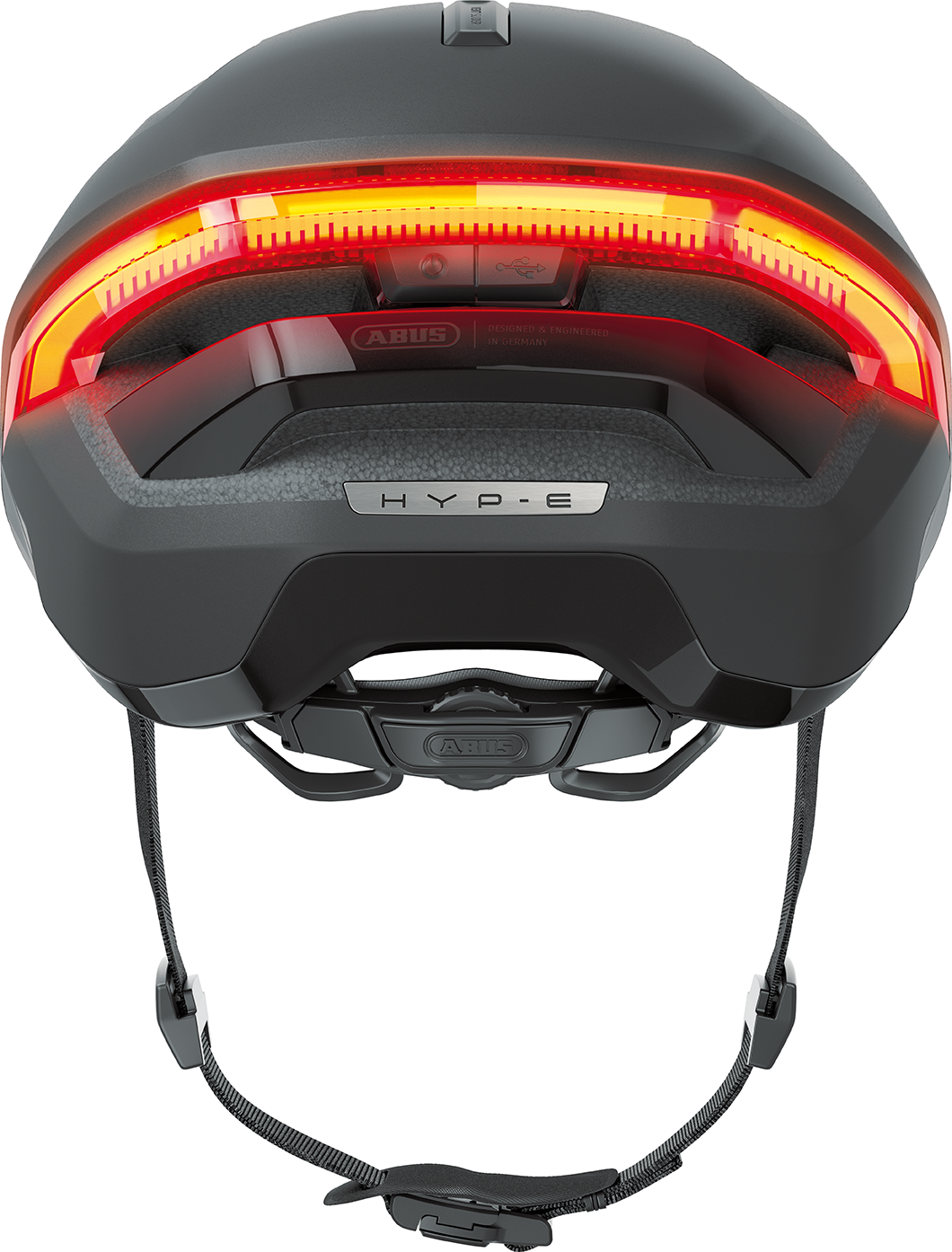 Die Sichtbarkeit im Straßenverkehr ist wahrscheinlich der wichtigste Aspekt beim Radfahren, um sich vor den alltäglichen Gefahren zu schützen, vor allem im urbanen Raum. Besonders wenn man mit schnellen, elektrisch unterstützten Bikes unterwegs ist. Der HYP-E bietet mit seinen unzähligen LEDs, die über den Front- und Heckbereich des Helmes verteilt sind, eine 360° Rundum-Sichtbarkeit. Das Rücklicht ist mittlerweile fast schon Standard und bei vielen urbanen Radhelmen verbaut. ABUS setzt hier beim HYP-E an und integriert beim leuchtstarken Rücklicht weitere Funktionen und ergänzt ein Frontlicht, das mit einer weißen Lichtleiste über die gesamte Breite der Vorderseite seine hohe Strahlkraft verbreitet und damit für die gewünschte Aufmerksamkeit auch bei entgegenkommenden Verkehrsteilnehmern sorgt. Insgesamt stehen fünf verschiedene Leuchtmodi zur Auswahl. Über einen USB-C-Anschluss kann der Akku wieder aufgeladen werden.