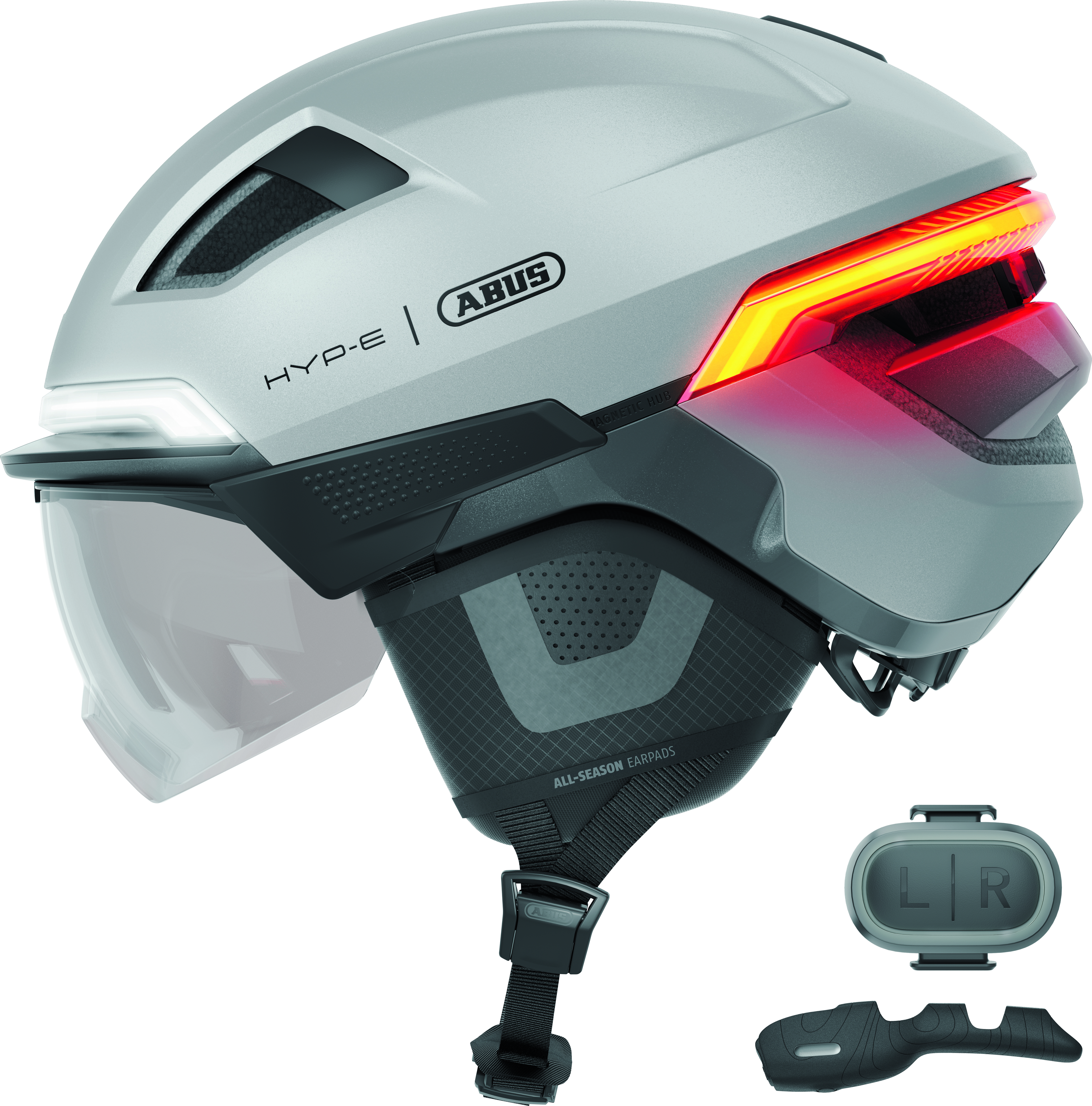 All diese Eigenschaften machen den HYP-E zu einem technologischen Innovationsträger. Das unterstreicht die facettenreiche Gestaltung, die sich durch das gegenwärtige Automobildesign inspirieren lässt und sich somit auf der Straße zu Hause fühlt. Verantwortungsbewusst geht ABUS auch mit den Ressourcen um und entwickelte den Helm nachhaltig: Jedes elektronische Element sowie das Visier und die EarPads sind separat austauschbar und nachrüstbar und können am Ende des Lebenszyklus dementsprechend getrennt entsorgt werden.